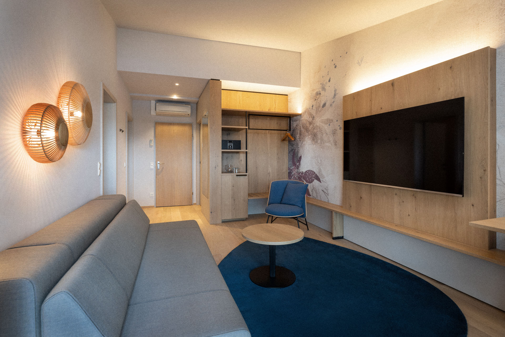 50 m² Wohn- und Schlafzimmer, komfortables Schlafsofa, Badezimmer mit Komfort-Badewanne oder begehbarer Dusche